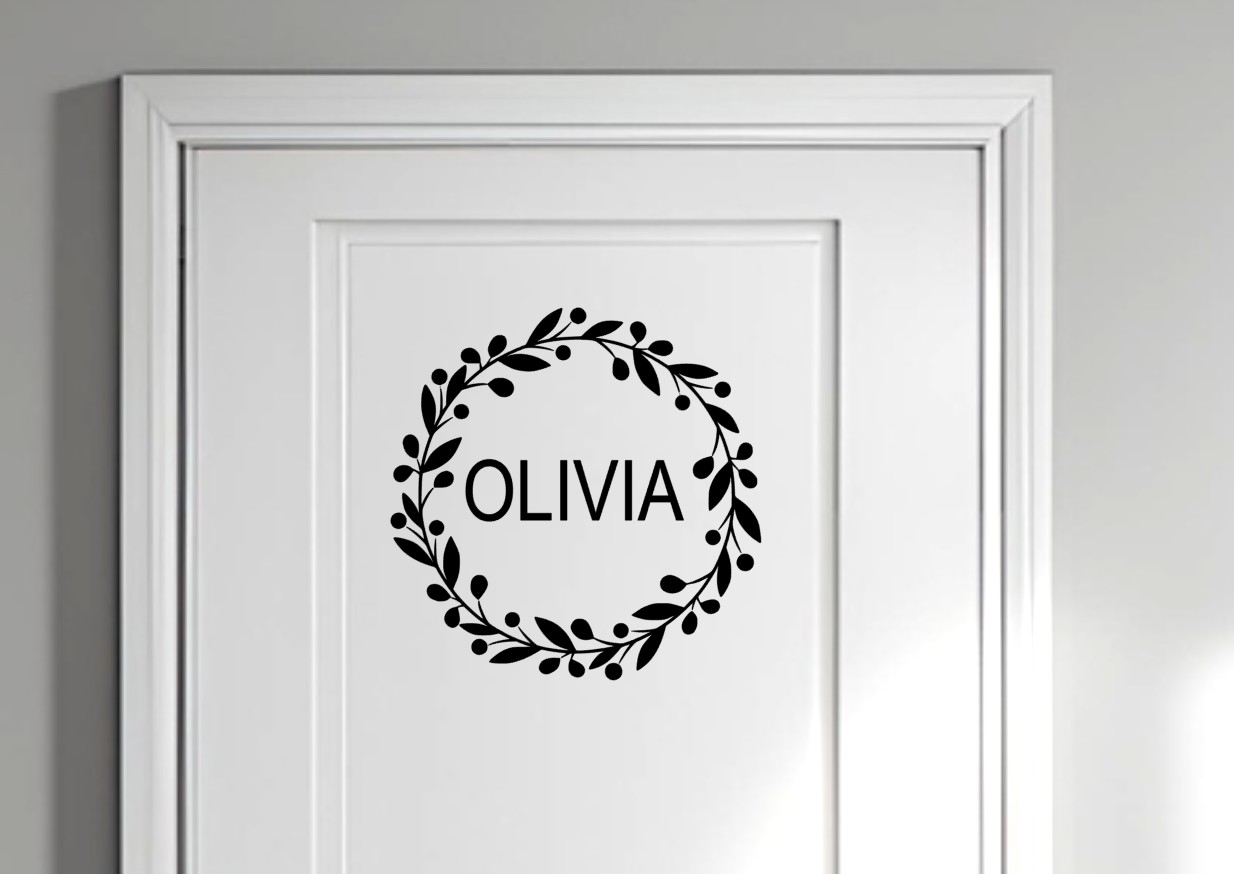 De deursticker wordt gepersonaliseerd met jouw naam en kleur en is verkrijgbaar in drie formaten: 15×15 cm, 20×20 cm en 30×30 cm.